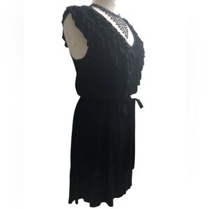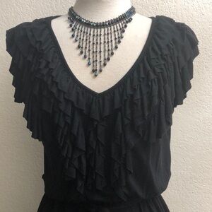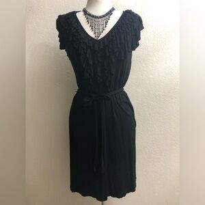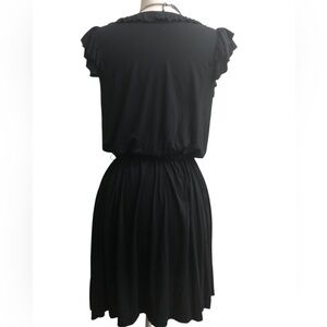 Elle Black Ruffle Sleeve and V-Neck with Tie Waist Dress