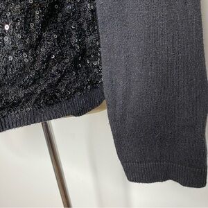 Elle Black Sequin Front Crew Neck Sweater. Soft cotton blend sweater with sequin body front, back is solid black. Mild pilling under arms, please review photo, otherwise great condition.