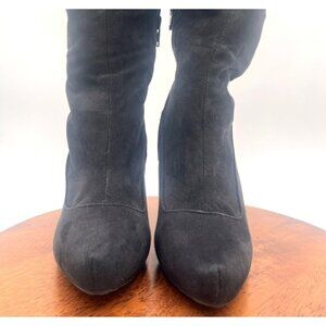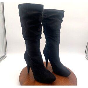 Elle Black Suede Pointed Toe Slouchy Heeled Mid-Calf Boots Size 6M