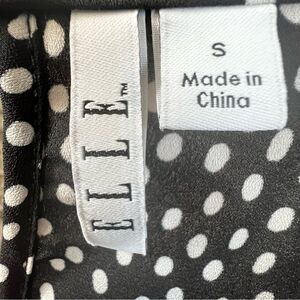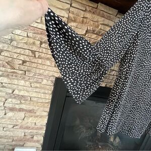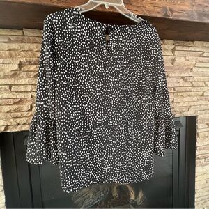 Elle Black White Polka Dot Bell Sleeve Twee Minimalist Preppy Blouse Size Small