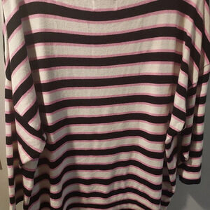 Elle Black, White and Pink Striped Dolman Sleeve Embellished Sweater in Size XL