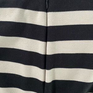 Chic pencil skirt with black and red stripes. Elegant and versatile design.