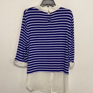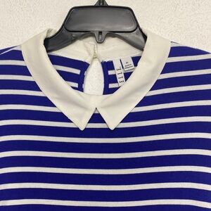 Elle Blue White Striped Long Sleeve Collared Layer Shirt Dress Tunic Top Size XL