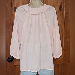 Chic blouse with ruffle neckline. Soft blush color and 3/4 length sleeves. Perfect for any occasion. NEW without tags. Any questions please ask. Thank you for browsing my collection!