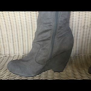 Elle Brand Gray Wedged Boots. Lightly Used. Size 8 1/2.