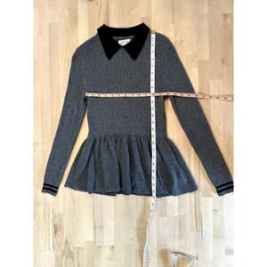 Elevate your wardrobe with this Elle Cotton Blend Collared Peplum-style Sweater! This soft and stylish sweater features a cute collar and a flattering peplum silhouette. It is made of 55% Cotton, 25% Viscose, and 20% Nylon. The sweater has a point to point measurement of 12 inches with plenty of stretch, comfortably fitting up to a 35-inch chest. The length measures 23 inches, making it a versatile addition to any outfit.