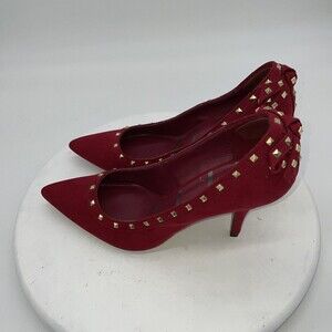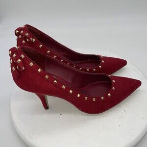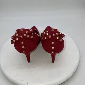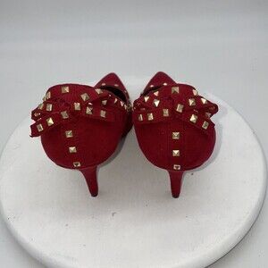 Elle Elkairired Suede Pumps Red Vegan Heels Gold Metal Studs Size 9.5