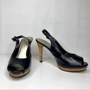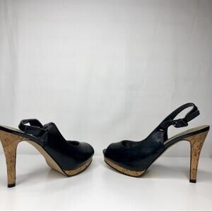 Elle Estella Black Slingback Cork Heels Black Size 7.5
