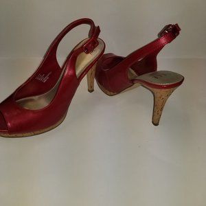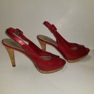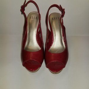 Elle Estella Red Slingback Open Toe Size 7 1/2 Heels and platform in cork