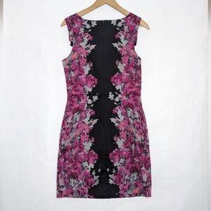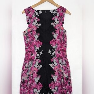 Elle Floral Sheath Dress Sz 8 Pink Black Sleeveless Career Wedding Guest Wiggle
