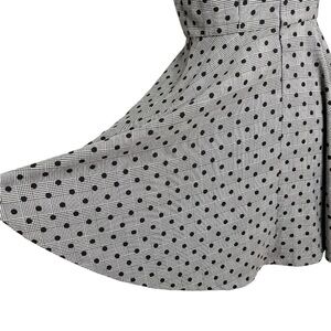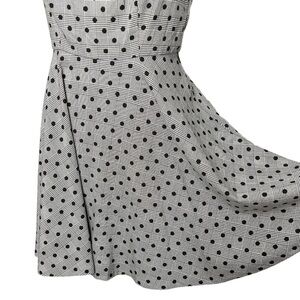 Elle Gray Glen Plaid Polka Dot Houndstooth Fit & Flare Sleeveless Dress. Size 10. In gently preowned condition: the zipper is a little warped but is still fully functional. It’s also missing the original belt but can add your own if desired. Black & white Glen plaid that creates an overall gray color. Black polka dots allover. Sleeveless. Skirt flares out. Lined at torso. Slightly stretchy polyester/rayon/spandex fabric. Back zipper closure. Flattering pleats at chest.