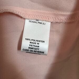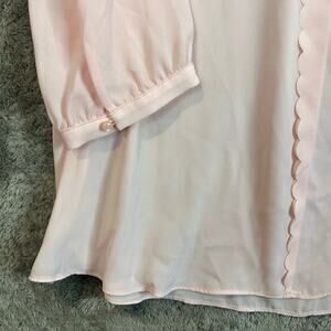 Elle L Large Blush Seashell Pink Scalloped Chiffon Crepe Blouse Button Down Top