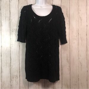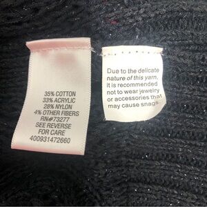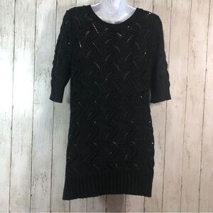 Black with silver specks, short sleeves, wide ribbed waistband,loose knit,colors may vary due to lighting, good used condition,Sz L