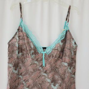 100% cotton, snake printed with lace trim.