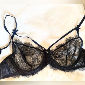 Pretty bra in black lace with navy silk piping