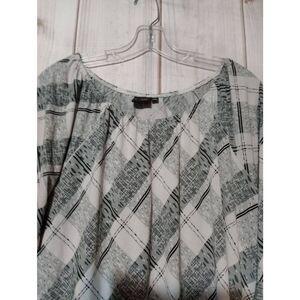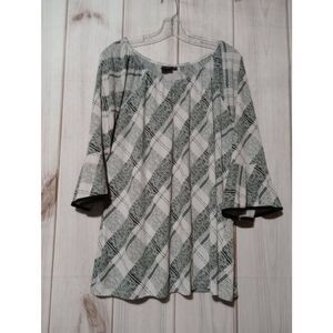 Elle McCarthy Shirt Ladies 1x Black White Bell Sleeve Round Neck