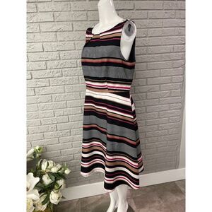 Elle Multicolored Women Sleeveless Striped Fit And Flare Dress Size L
