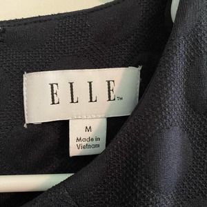 Elle Navy Blue and Green Pleated Textured Dress Size Medium