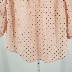 Elle Peach Whip Polka Dot Tie Neck Long Sleeve Sheer Chiffon Career Top Blouse S