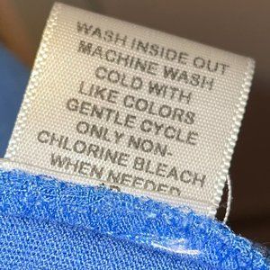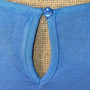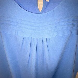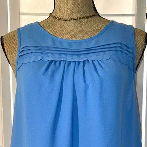 Elle Periwinkle Blue Sleeveless Top. This amazing color tank features a layered look ending with a scallop detail crossing above the bustline. 100% Polyester Front, and 100% Rayon Back. There is a small, slight whole where the tag was removed, picture included. (I didn't even notice when I wore it, only disc