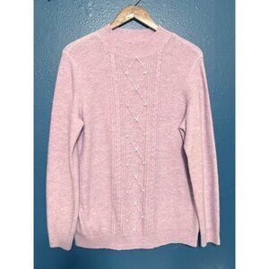 Elle Pink Pearl Embellished Mock Neck Sweater L