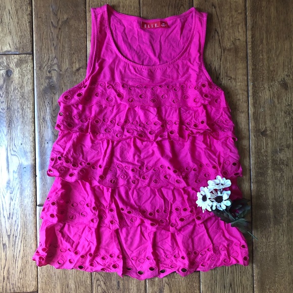 Elle pink tiered ruffle top. Worn once. Will steam before shipping.