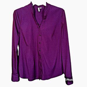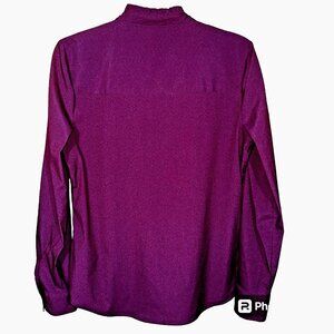Elle Plum Ruffle Blouse M Button Front Roll-Tab Sleeve Whimsigoth Workwear Chic