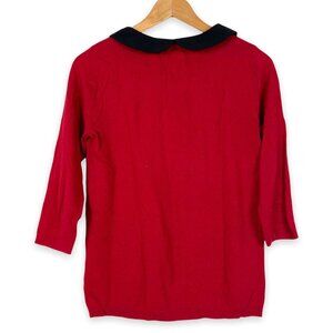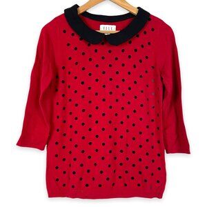 Elle Polka Dot Peter Pan Collar 3/4 Sleeve Sweater Red Black XS