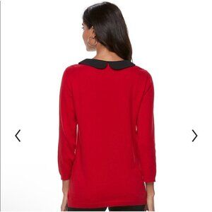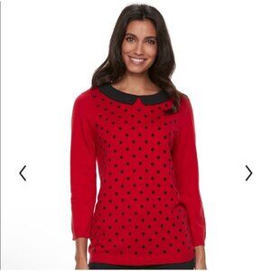 Red and black polka dot sweater from Elle. Peter pan collar, 3/4 sleeve. Size extra small. Gently worn. No rips or tears. Smoke free pet free home.
