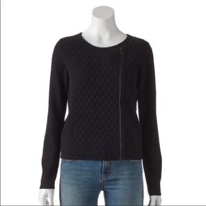 Elle Quilted Moto Textured Cardi Sweater EUC