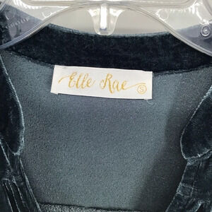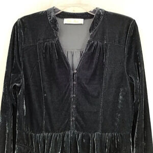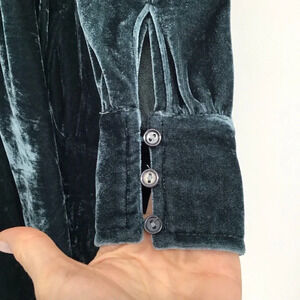 Elle Rae Velvet Shirt Dress Button-Up Stand Collar Midi Green Dress Size S