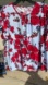 Chic floral design. Red blooms on white fabric. Perfect for casual outings.