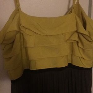 Cute mid thigh Elle zipper dress with yellow ruffle and an elastic waist.