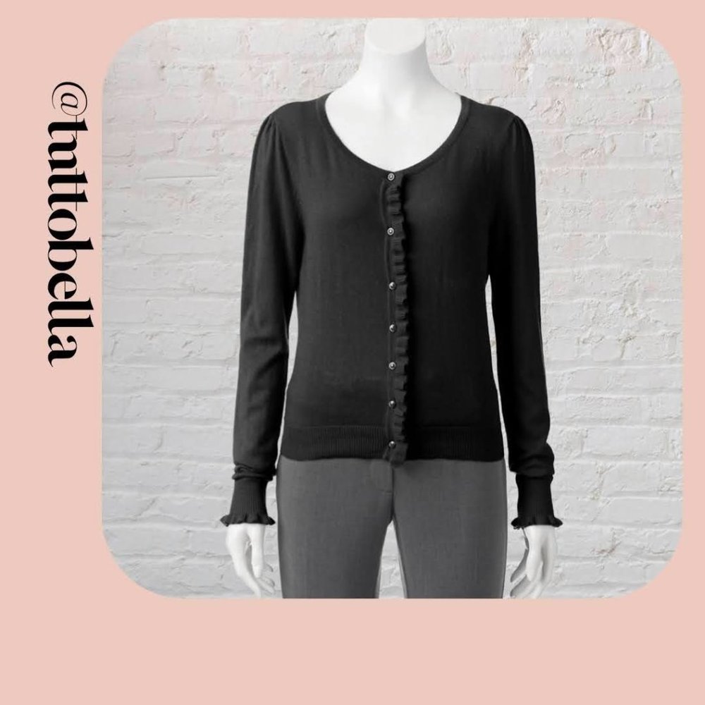Elle Ruffled Black Cardigan Size XL