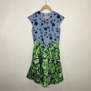 Elle Sasson Holly Colorblock Botanical Floral Silk Cap-Sleeve Dress Size Size 4