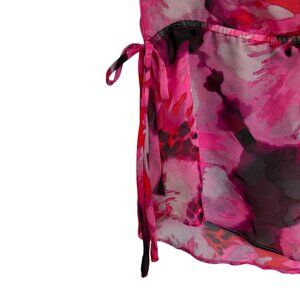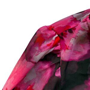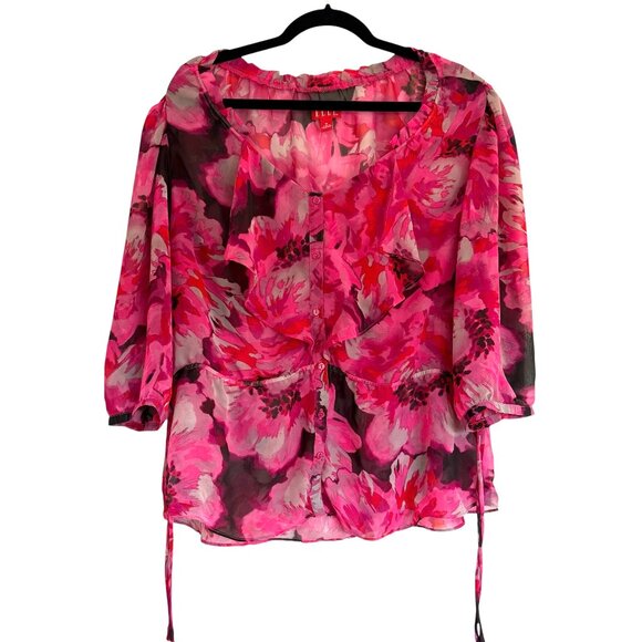 Elle Sheer Pink Floral Blouse Ruffle Neck Maximalist Floral Size XL