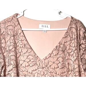 Elle Shirt Womens Size XXL Blush Pink Pullover Floral Lace Lined Stretch V-Neck