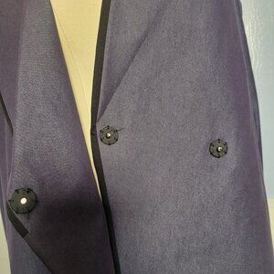 Elle Size 2 Blueish Purple Black Trimmed V Neck Belted Buckle Dress Coat