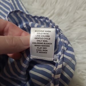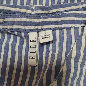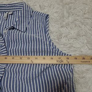 Elle Sleeveless Button Up Top Womens Size Small Blue White Stripe Ruffle