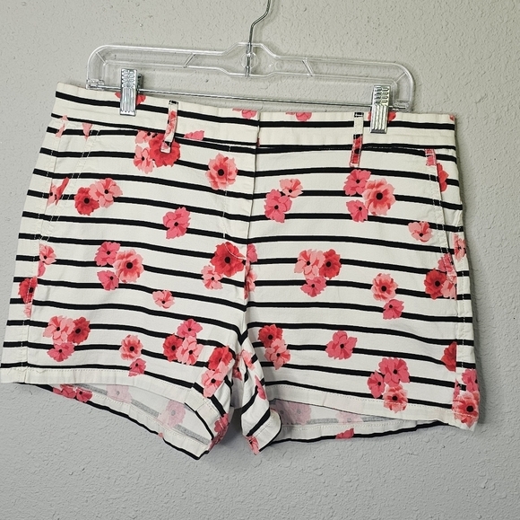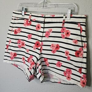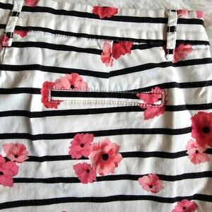 Elle Striped Floral Chino Walking Shorts Women Pink Black White Size 12