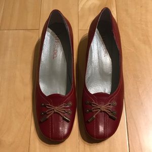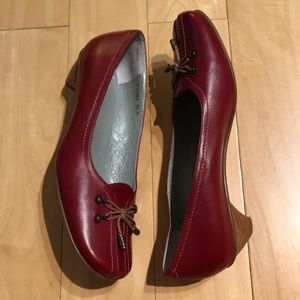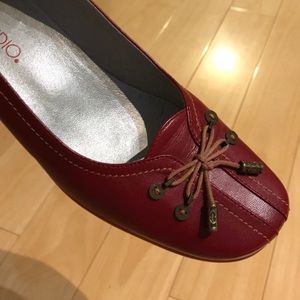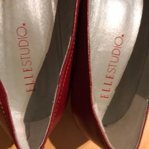 EUC Elle Studio leather pump, deep red, 1.25” heel, wore once, excellent condition on leather, minor scratch on heels, barely noticeable, very comfy.