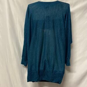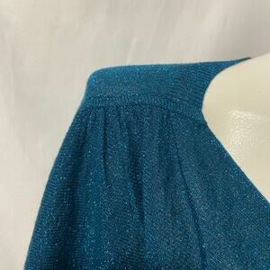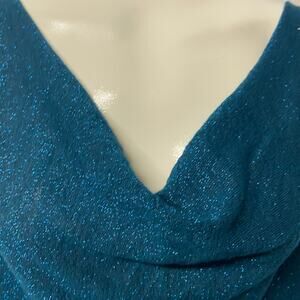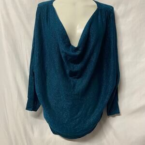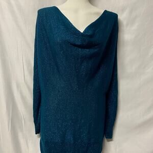 Elle Sweater Blue Metallic Threads Drop Cowl Neck Bat Wing Sleeves Light Weight