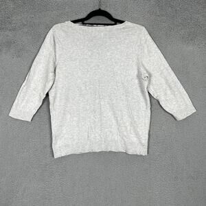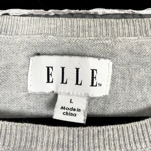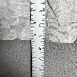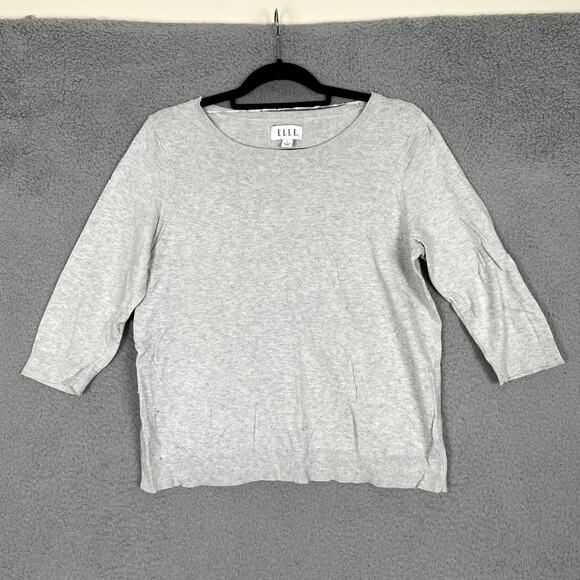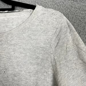 Elle Sweater Womens Large Gray Diamond Pattern Pearl Embellishment Short Sleeve