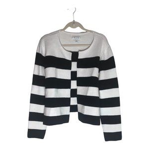 This Elle sweater in size 2XL is a stylish and comfortable addition to any wardrobe. The black and white striped pattern adds a touch of sophistication, while the long sleeves and cardigan style make it perfect for cooler weather. The sweater is machine washable for easy care and maintenance.