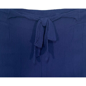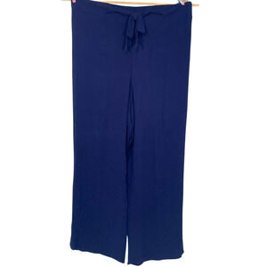 Elle Sz XL Wide Leg Pants Cropped 25.5"L Elastic Waist w/Tie Crinkle Rayon Blue