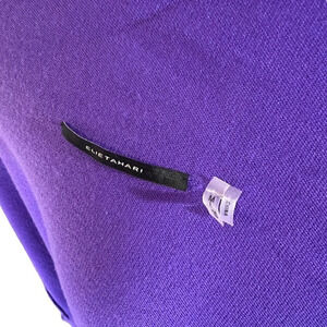 This Tahari cardigan sweater in a beautiful shade of purple is a must-have for any fashion-forward woman. Made from 100% Merino wool, it is soft to the touch and perfect for those chilly days. The tight-knit pattern and long sleeves make it suitable for both casual and formal occasions, whether it's for workwear or business attire.