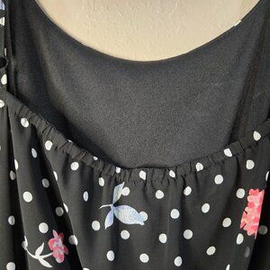Elle Tank Dress, Elastic waist, polka dot w/flower print, Adjustable straps, Lg
