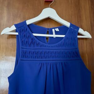Elle Tank Top Royal Blue Women's Small Sleeveless Blouse Diamond Texture Keyhole