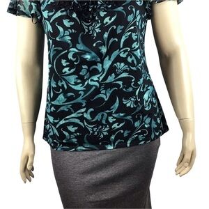 Elle Top Size 0X Multicolor Print Short Sleeve Lined Career Blouse