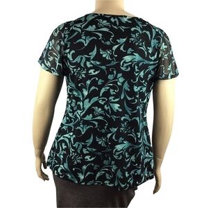 Elle Top Size 0X Multicolor Print Short Sleeve Lined Career Blouse